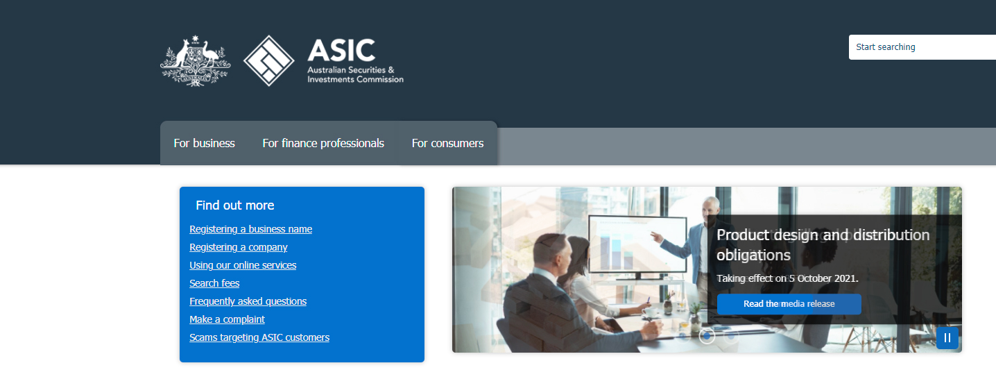 توفر ASIC أيضًا سجلا موجزًا حول الشركات المرخصة في قاعدة بيانات رسمية للشركة، والتي تتيح للمتداولين معرفة معلومات أكثر عن الشركة قبل إتخاذ قرار بفتح حساب.