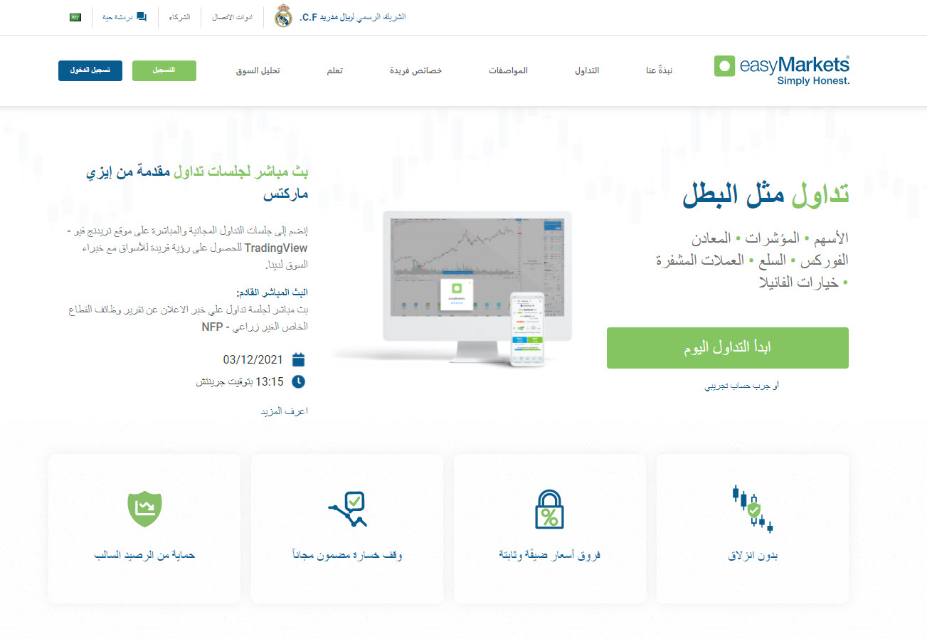 كما تتيح شركة easyMarkets امر وقف الخسارة المضمون بشكل مجاني. كما تتيح المنصة امكانية التداول على عدة اصول مثل العملات الاجنبية ” الفوركس ” .