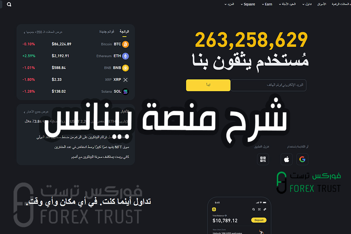 منصة بينانس للتداول هي منصة تداول خاصة بتداول العملات الرقمية تتمتع بأقل عمولة في العالم مما يجعلها المنصة الأكثر تفضيلاً للمضاربين على العملات الرقمية في الوطن العربي والعالم بالنسبة لمتداولي الكريبتو.